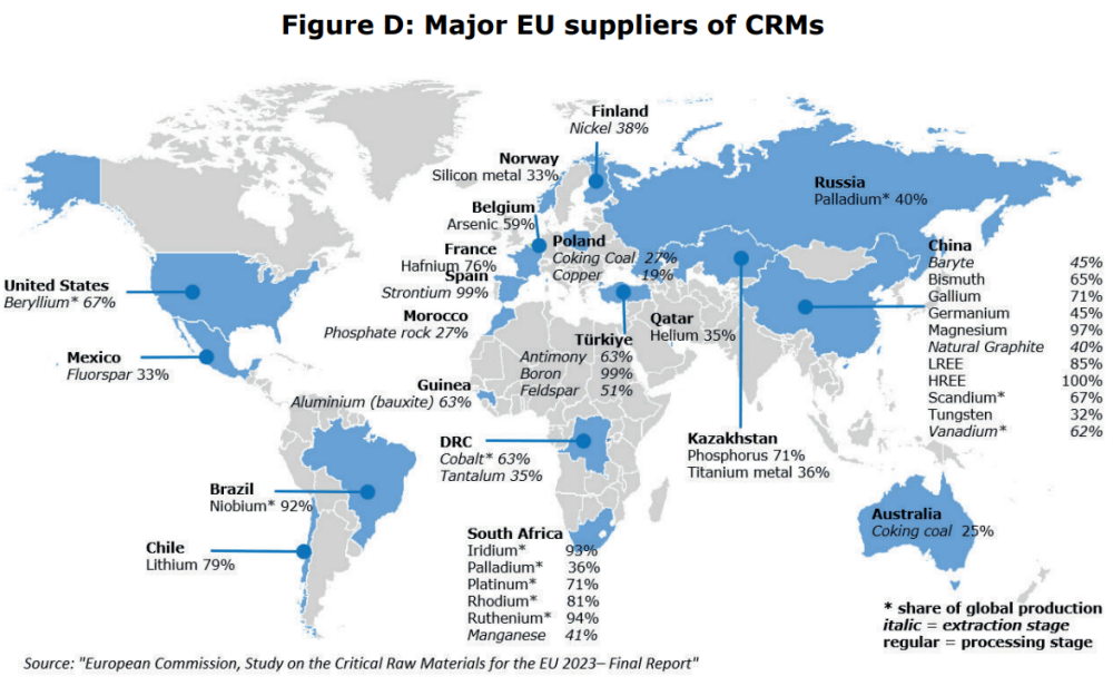 Figure 3: Major EU Suppliers of CRMs / SOURCE: JRC, 2023
