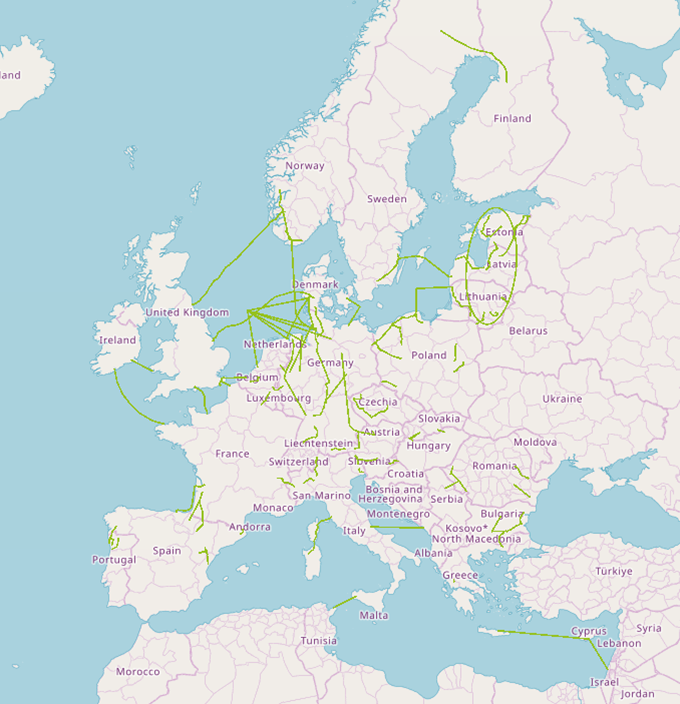 Map of electricity transmission lines in the PCI regime / SOURCE: European Commission, CINEA, PCI Transparency Platform, retrieved 17/03/2024