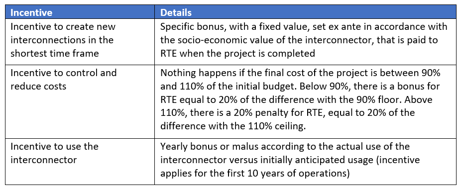 Both mechanisms are explicitly devised to provide incentives for private financing, i.e. to cover part but not all of the financing. This ensures that the interconnection projects respond to a real market demand and that the financing does not generate windfall effects.