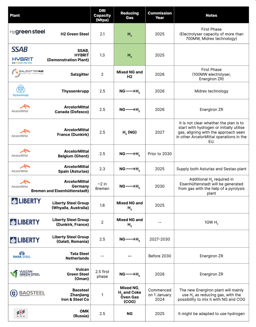 Midrex, the largest manufacturer of DR plants, offers flexibility in its process, which can function with varying hydrogen ratios in the reducing gas mix. This allows for a gradual transition from gas to hydrogen whenever green hydrogen production becomes cost-competitive.