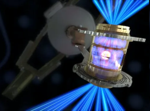 Laser energy being converted into X-rays inside a box, which compress a fuel capsule until it implodes / IMAGE: LLNL