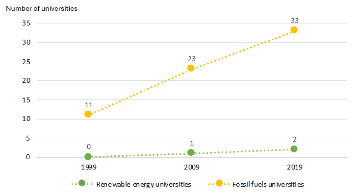Figure B. Entire universities specialising in fossil fuels and renewable energy
